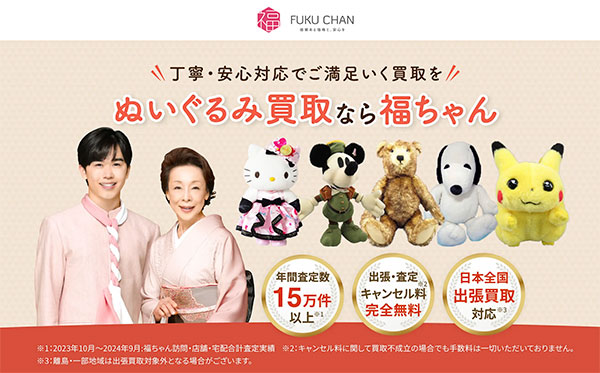もしあなたが、デスノートの大切なぬいぐるみを少しでも高く、きちんと価値を分かって買い取って欲しいと願うなら、おもちゃ専門の買取業者・福ちゃんがおすすめです!