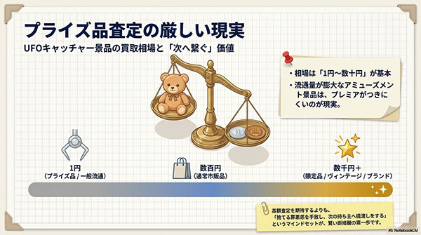 実際に店舗へ持ち込んでみると、大きな紙袋にいっぱいに詰めたUFOキャッチャーの景品がまとめて数百円にしかならなかった、という経験をした人も多いはずです。